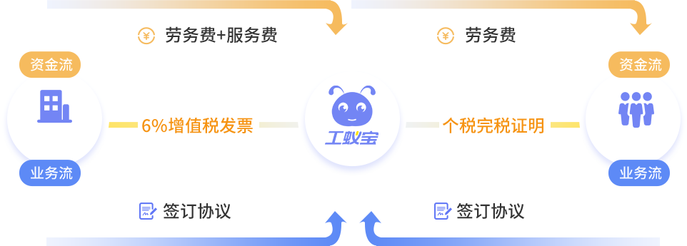 共享經(jīng)濟(jì)下,工蟻寶作為用工智能撮合平臺(tái),完成發(fā)包、接單、執(zhí)行、審核、結(jié)算、報(bào)稅等一體化管理。 企業(yè)通過(guò)工蟻寶平臺(tái)發(fā)包(發(fā)任務(wù)),靈工通過(guò)平臺(tái)接包(接任務(wù)),建立起業(yè)務(wù)合作關(guān)系;企業(yè)通過(guò)平臺(tái)支付靈工的費(fèi)用,并拿到增值稅專(zhuān)票;然后平臺(tái)代扣代繳個(gè)稅后,給靈工發(fā)放費(fèi)用;最終做到合同流、業(yè)務(wù)流、資金流、票據(jù)流,四流一致,合理合規(guī)降低企業(yè)成本。